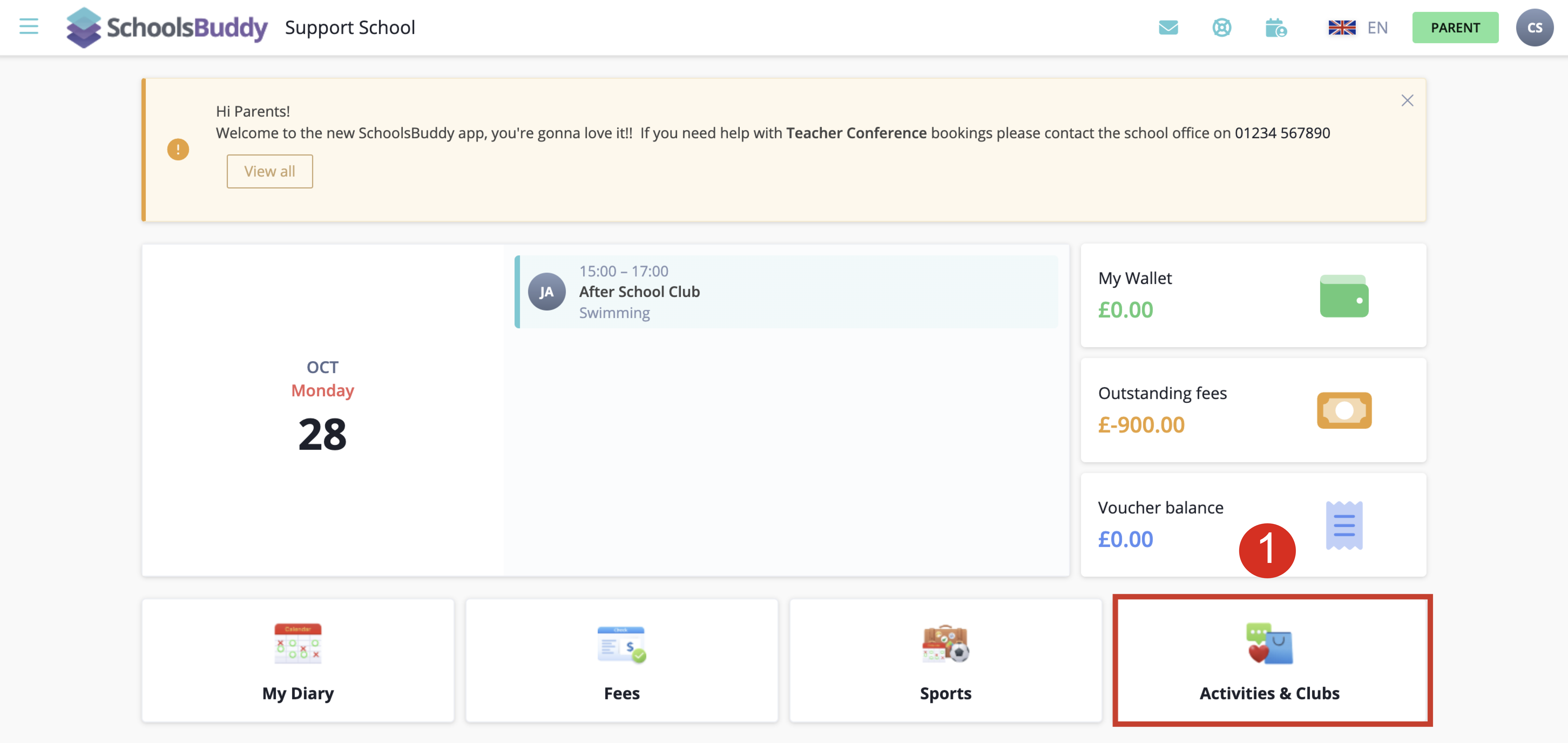 Click the on the Main Menu icon in the top left corner and then Activities & Clubs (this may be labelled differently depending on your School).