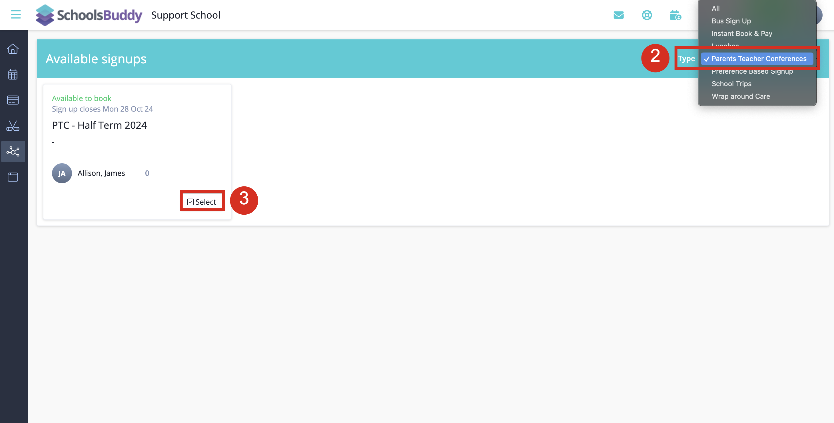 If necessary, you can filter the Type of signups to only show Parent Teacher Interview