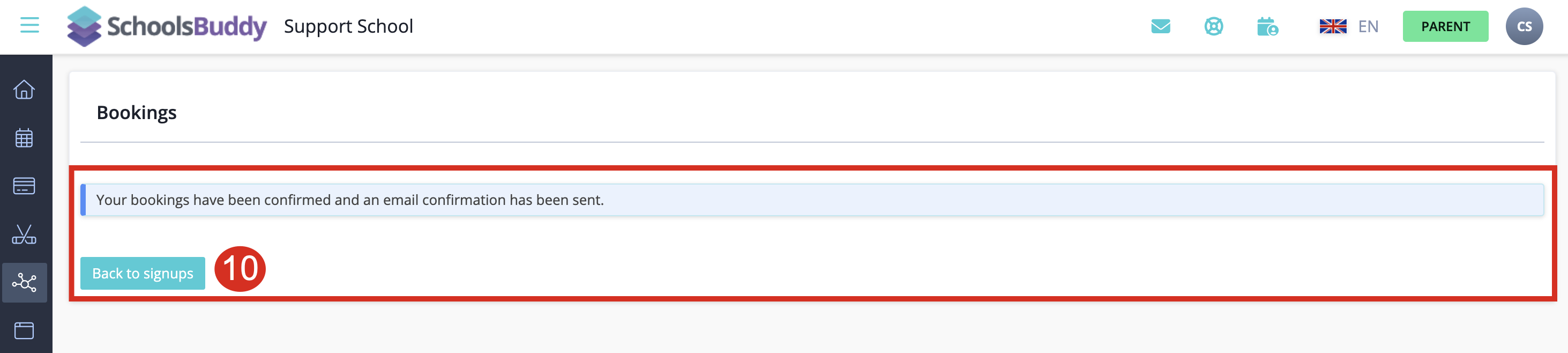 A confirmation message appears and you will receive an email confirmation displaying the parent evening/parent conference bookings similar to the example below: